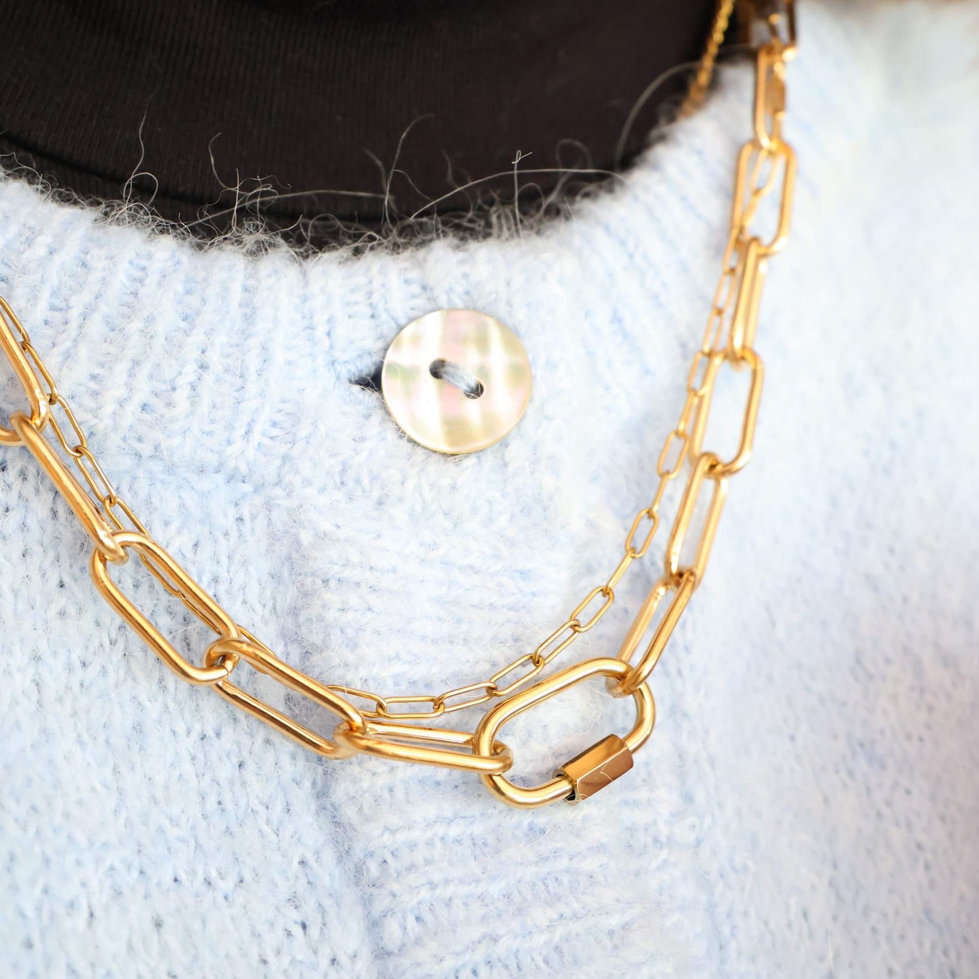 Automatisch wird die Mega Kette mit dem kleinen Link in der passenden Farbe gefertigt. Das Besondere: Link und einzelne Kettenglieder sind fast gleich groß. Dadurch fügt sich der Link harmonisch ins Design ein und kann – wenn du möchtest – optisch nahezu verschwinden. Das Ergebnis ist eine durchgängige, starke Kettenoptik ohne klassischen Verschluss-Look.